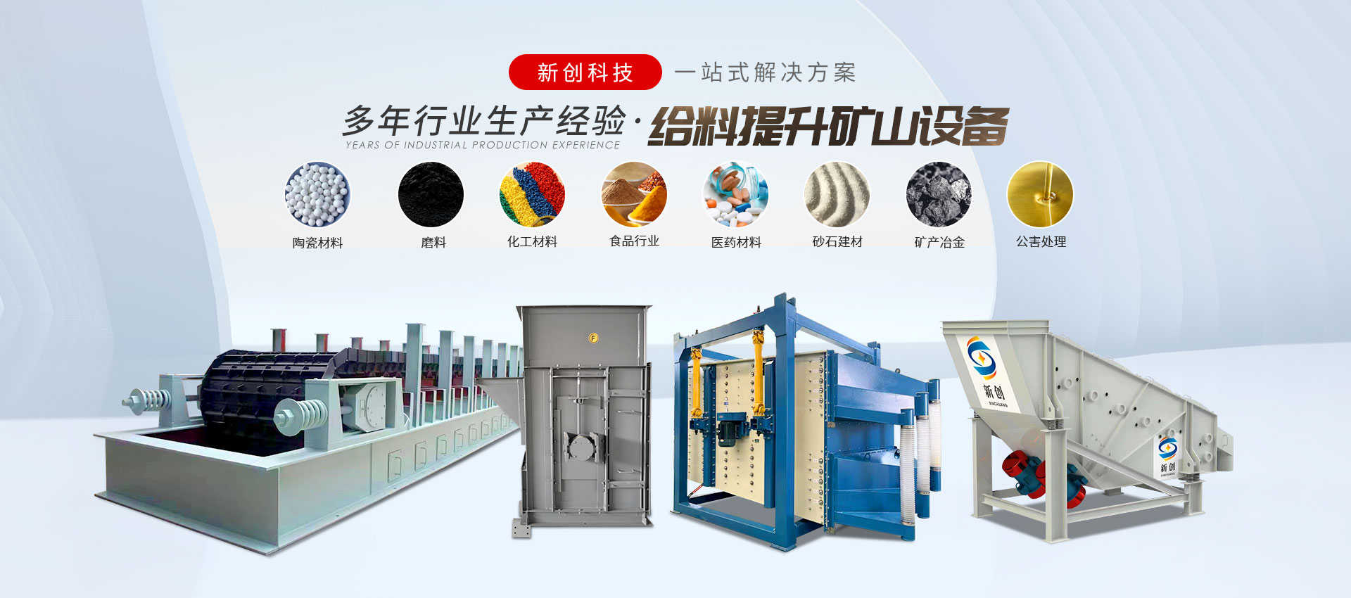 邯鄲市峰峰礦區(qū)新創(chuàng)科技有限公司是振動設備、給料設備、振動篩分設備、輸送設備、提升設備、除塵設備等制造廠,玻璃原料輔機生產(chǎn)廠。